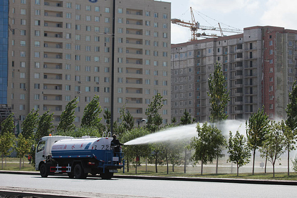 Услуги по поливу зеленых насаждений выполняются при помощи поливомоечной машины. Такой способ является наиболее актуальным, если группы деревья или кустарников высажены в полосу газона.
