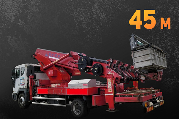 Автовышка 45 метров подходит для проведения работ в сфере ремонта, строительства, монтажа и так далее.