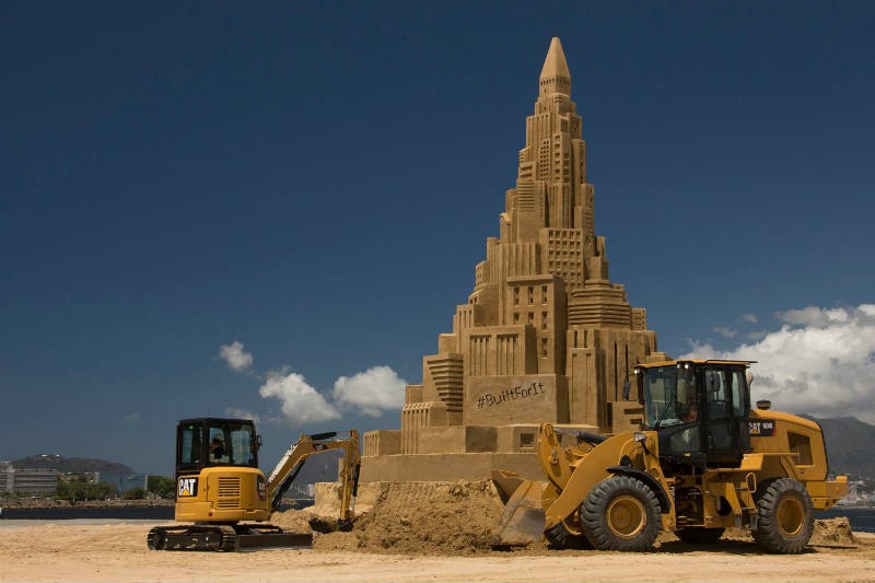 С применением гидравлического экскаватора, грунтового виброкатка, фронтального погрузчика, бульдозера, мини-экскаватора на пляже в Рио-де-Жанейро был построен самый высокий в мире замок из песка. На возведение конструкции высотой 12,59 м ушло 734 м3 песка. Строение вошло в Книгу рекордов Гиннесса. На постройку было потрачено 15 дней.