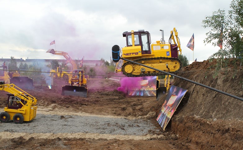 Какие только маневры не совершают водители спецтехники, чтобы продемонстрировать свои профессиональные навыки и возможности машины. Один из самых сложных трюков был выполнен командой «ЧЕТРА». Они осуществили проезд бульдозера Т-1, вес которого составляет 21 тонну, по стальным канатам на высоте 5 метров! Испытатели натянули тросы на четырех гусеничных тракторах Т-35. Водитель бульдозера опирался лишь на сигналы руководящего оператора. Успешное выполнение этого трюка позволило бульдозеру получить статус самой управляемой спецтехники.
